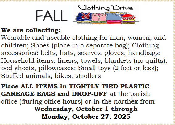 Clothing Drive begins - October 1-27